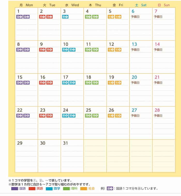 公立中学向けの一般的な教材とは異なり、中高一貫校の進度・深度に合わせて設計された専用カリキュラムを採用しています。中2で高校内容に入る学校や、英語・数学の進度が速い学校にも対応しやすい構造です。